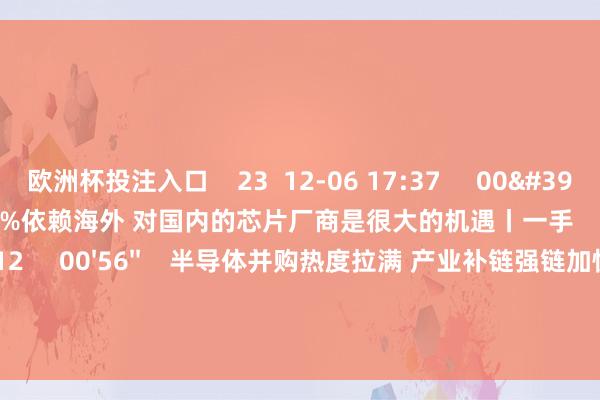 欧洲杯投注入口 23 12-06 17:37 00'14'' 汽车筹算芯片90%依赖海外 对国内的芯片厂商是很大的机遇丨一手 69 12-06 13:12 00'56'' 半导体并购热度拉满 产业补链强链加快鼓动 77 12-03 11:40