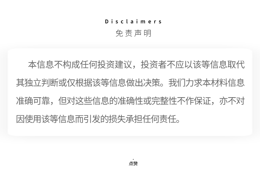 本信息不组成任何投资提议,投资者不应以该等信息取代其镇定判断或仅凭据该等信息作念出方案。咱们致力本材料信息准确可靠,但对这些信息的准确性或圆善性不作保证,亦不合因使用该等信息而激励的亏蚀承担任何包袱。