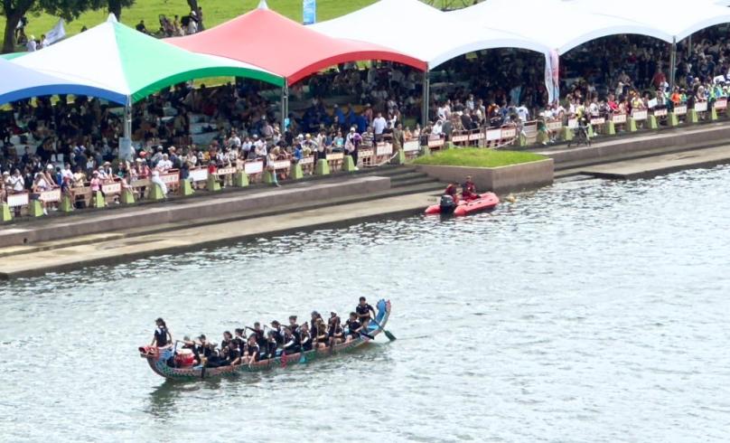 这是6月10日拍摄的2024台北龙舟锦标赛现场。新华社记者 王承昊 摄