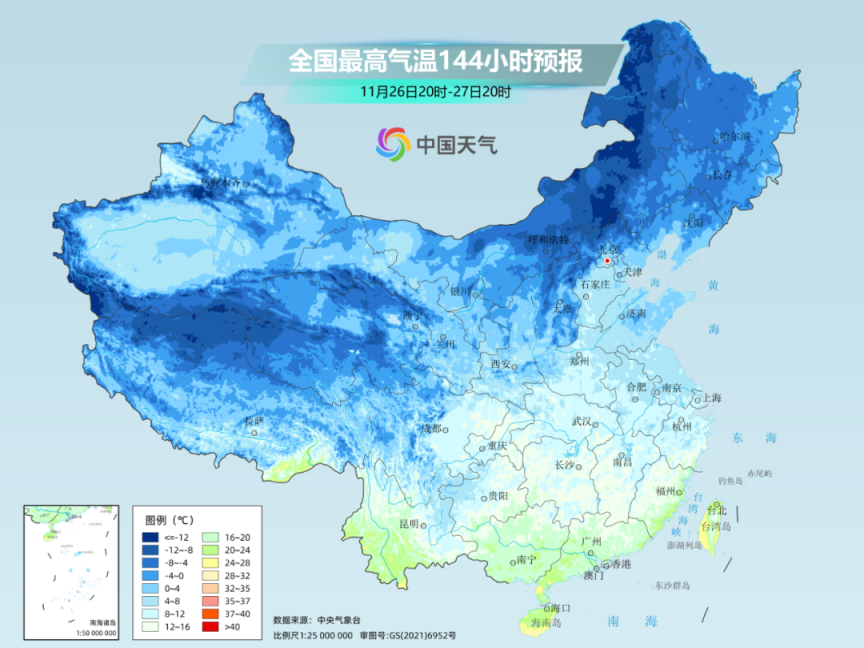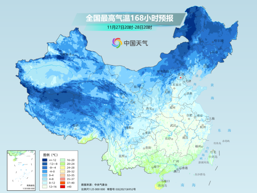 ↑ 看28日最低气温预告图,整个图王人是“冬日蓝”了……