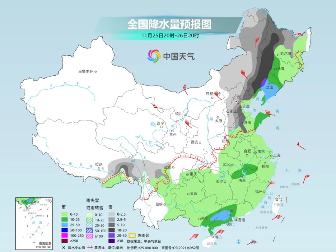 重心矜恤东北地区和内蒙古东部地区的降雪或有一定极点性,最强降水时段为25-26日。由于高空将有冷涡行动,水汽、能源、温度条目王人具备,内蒙古东部、黑龙江、吉林等地将出现大到暴雪,谨慎细致强降雪、新增积雪及雪后说念路结冰等对交通出行等方面的不利影响。